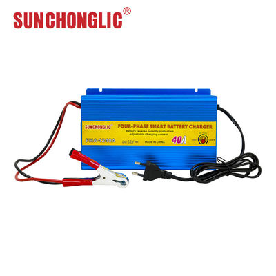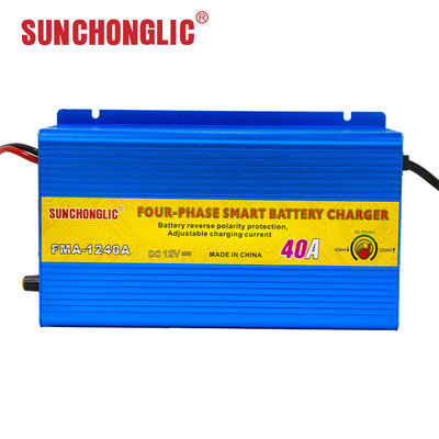 Professional 12V 40A AC/DC lead acid car battery charger with AC 220V 50Hz input and four-phase charging technology.